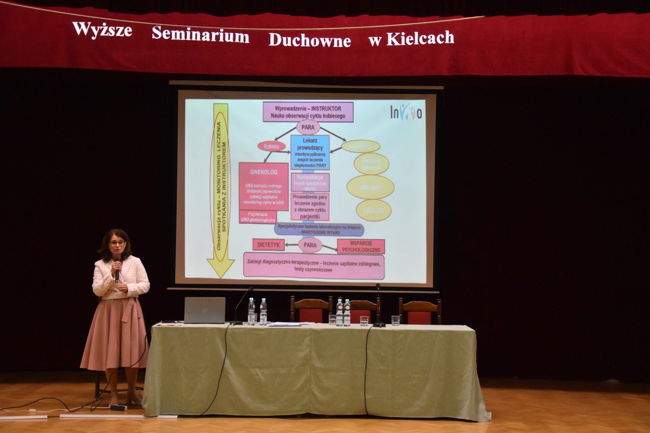 Dr A. M. Kicińska przedstawiła porcję solidnej wiedzy medycznej związanej z immunologią i fizjologią człowieka, jako dziedzinami mającymi ogromne znaczenie dla przekazywania życia. Podkreśliła jak ważna jest edukacja, która stanowi podstawę do tego, żeby ludzie chcieli się uczyć logiki własnego organizmu, a nie podejmować procedury. Często bywa tak, że ludzie są młodzi, zdrowi, a dziecko się jednak mimo woli rodziców nie poczyna. Pokazuje to, że parametry biologiczne człowieka, to nie wszystko, że ostatecznie „kropkę nad i” stawia Pan Bóg, mówiła w swoim wystąpieniu dr Kicińska. W wystąpieniu dr Kicińskiej - co było bardzo ujmujące - cały czas w przekazie na wysokim poziomie wiedzy medycznej, przewijał się wątek wiary, bo jak sama podkreśliła w oparciu o własne doświadczenie pracy naukowej i lekarskiej, nie może być zgrzytu między nauką i wiarą.